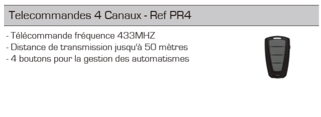 PR4 Télécommande code variable 433Mhz